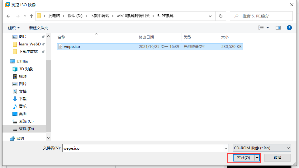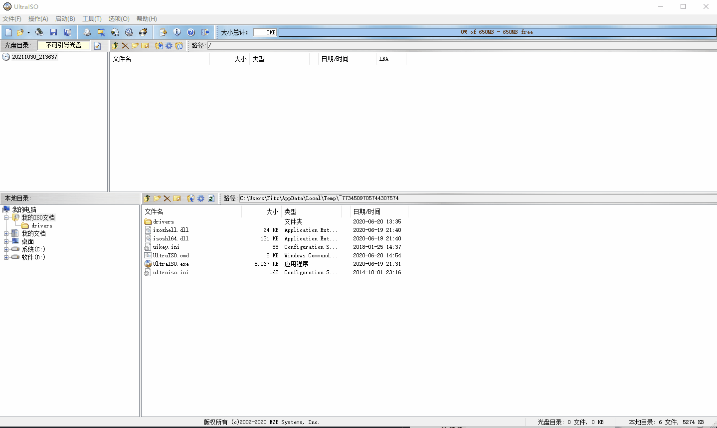 9. 制作ISO– 双击打开UltraISO– 点击左上角的文件– 点击打开– 选择封装所需软件中的2. 官方原版系统镜像– 下方跳转到包含封装好的系统的文件夹 – 上方找到install.wim右键点击然后删除掉 – 将下方的install.wim左键按住拖到(复制)到上方 – 将制作好的iso启动镜像另存为到物理机的磁盘中