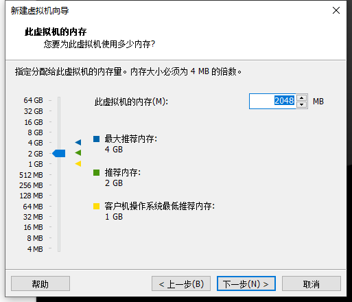 - 虚拟机的内存一般设置2048M(2G)就可以了, 有条件的给4096M(4G) 接着”下一步”,