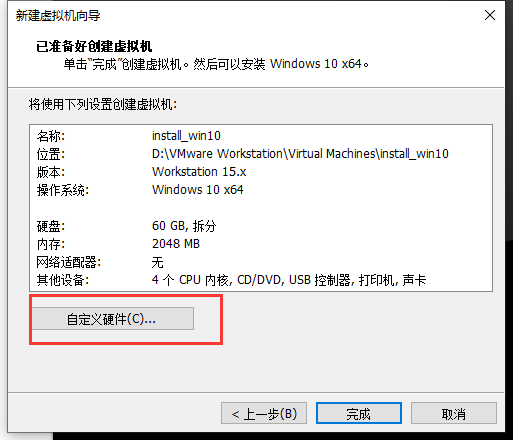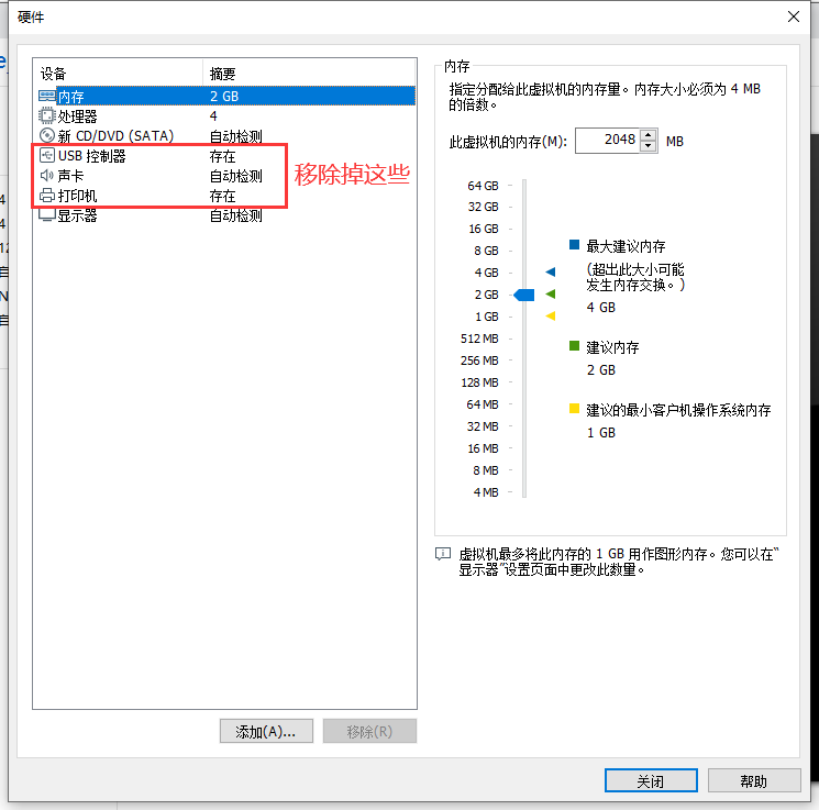 - 虚拟机测试下不用移除任何硬件(网卡、USB、打印机等)