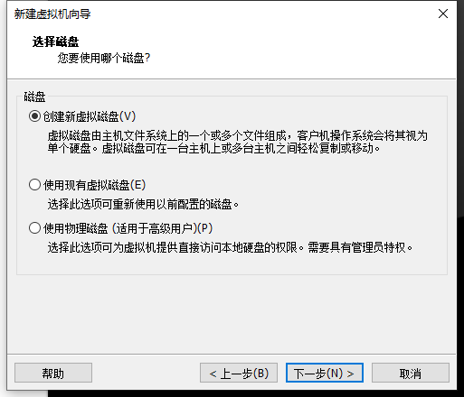 - 磁盘选择”创建新虚拟磁盘”, 接着”下一步”,