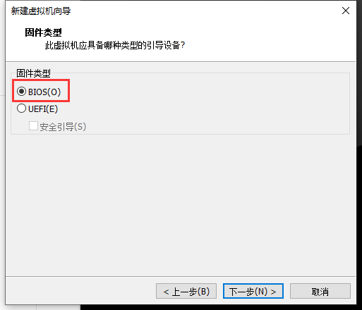 - 固件类型选择”BIOS”, 接着”下一步”,