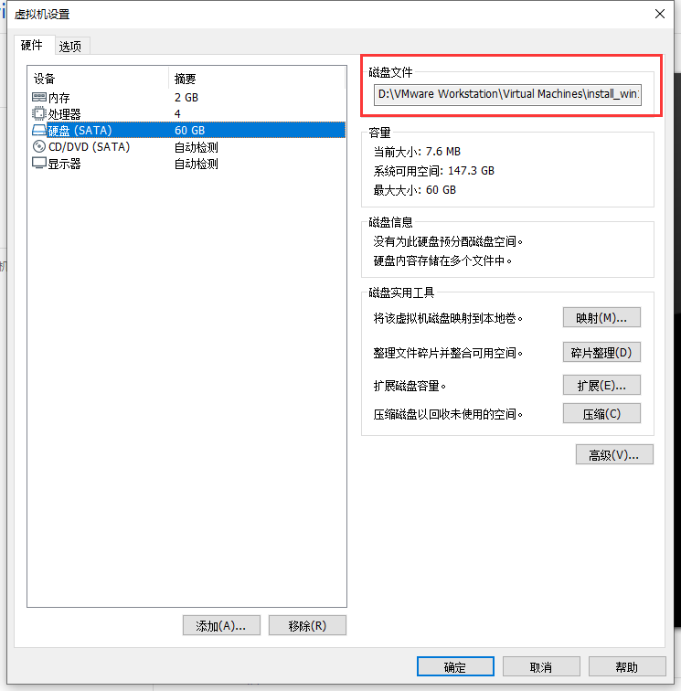 - 选择虚拟机的虚拟硬盘, 虚拟硬盘位置可在虚拟机设置中查询