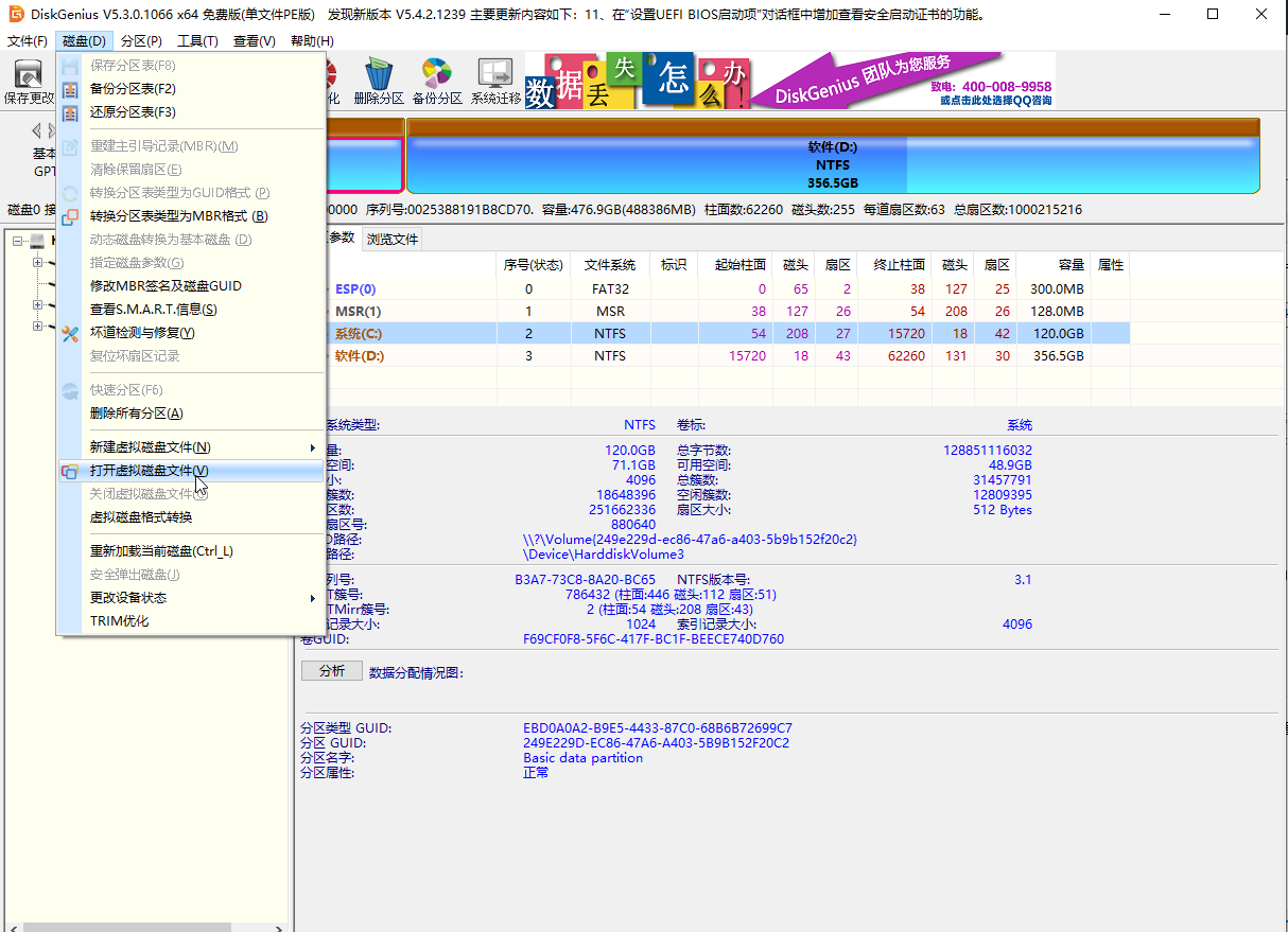 6. 分区软件中的DiskGenius – 硬盘 – 点击打开虚拟硬盘文件