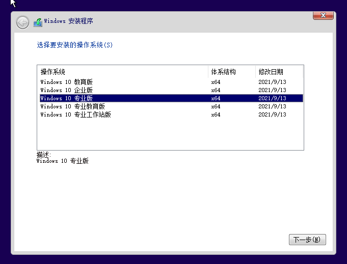 - 选择操作系统类型, 一般选专业版就够用了, 想要最全的功能可以选择专业工作站版