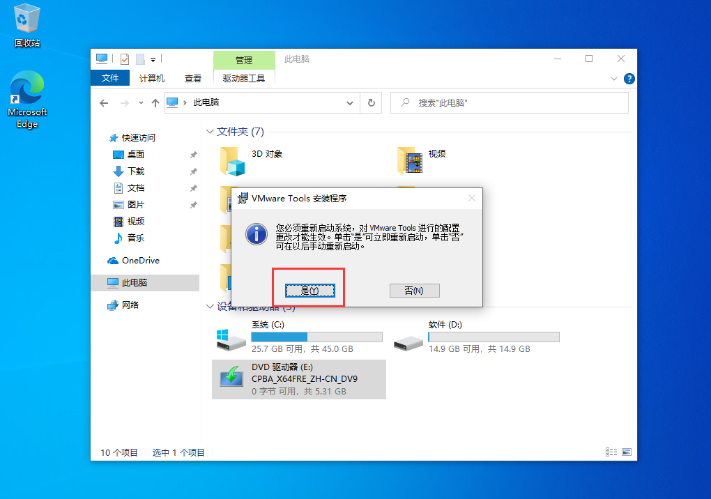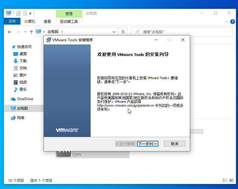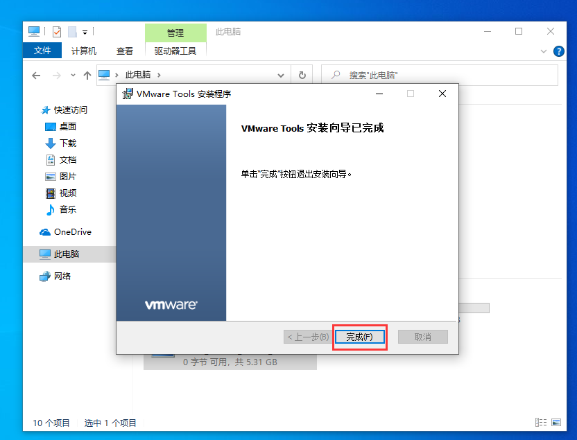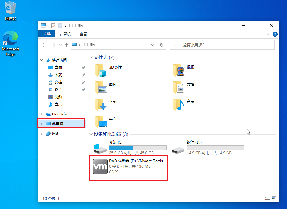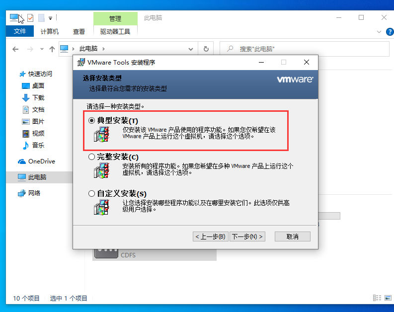 需要注意: 如果虚拟机没有自动弹出安装的对话框, 可以主动点进文件资源管理器中点击安装