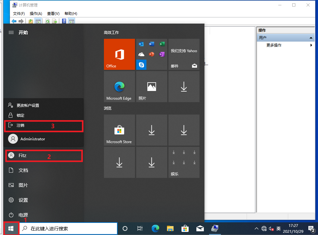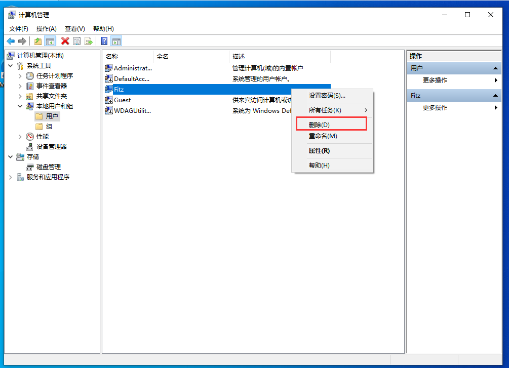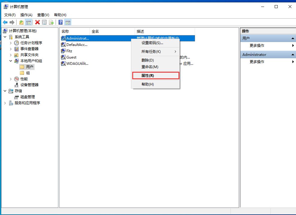 - 先点击左侧的本地用户和组, 右侧单击用户