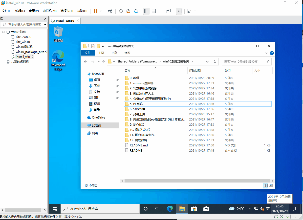 - 完成后去保存的位置(D盘)看看install.wim是否存在 – 确定存在后就关闭虚拟机, 不存在请回退上一个快照然后重新一步步跟着走