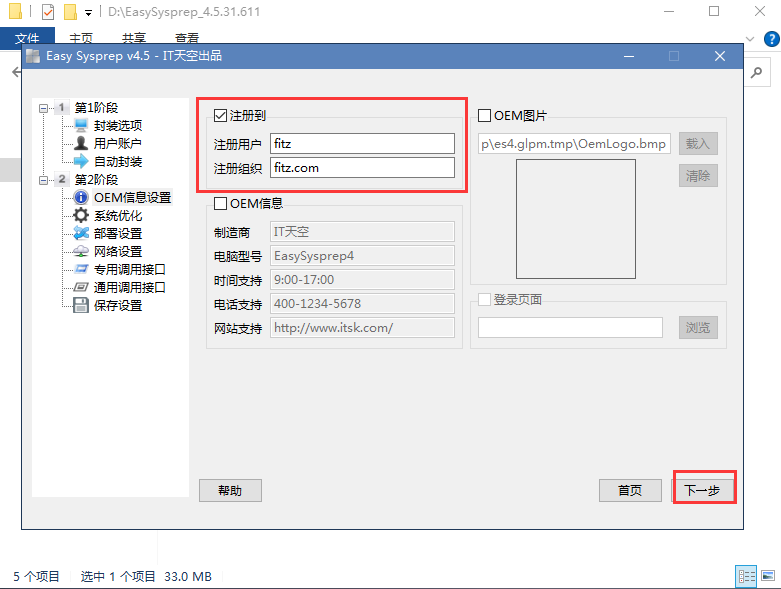 - 取消勾选OEM信息和图片 – 点击”下一步”