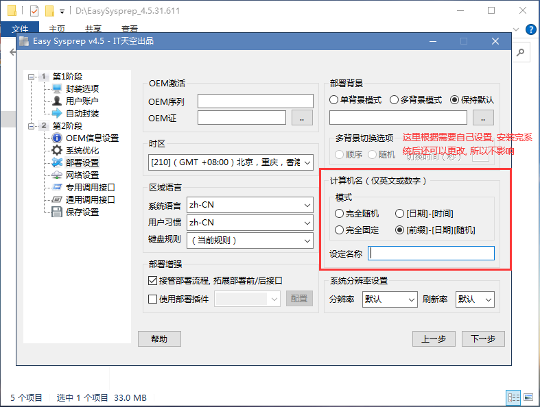 - 再次填写的信息要与第10-15步完全一致, 这样配置文件和最终封装的系统才不会有冲突! 一定要完全一致