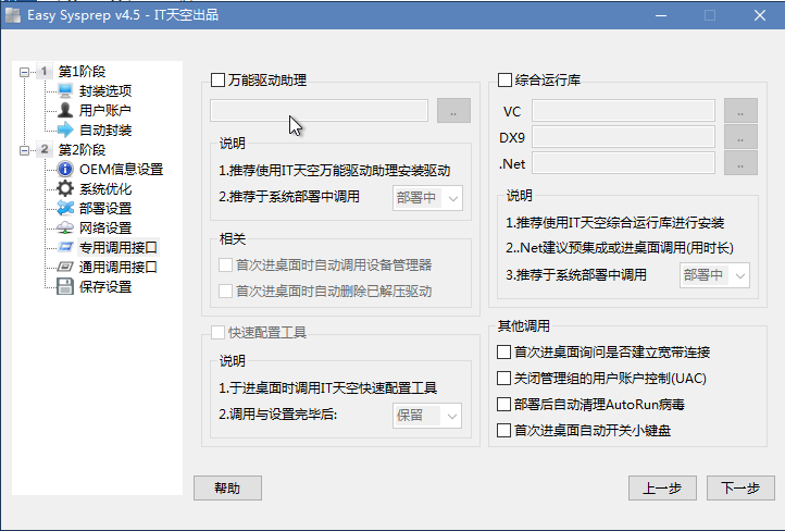 - 先拖到最下取消网站首页的绑定 – 再取消所有默认勾选的系统优化 – 点击”下一步”