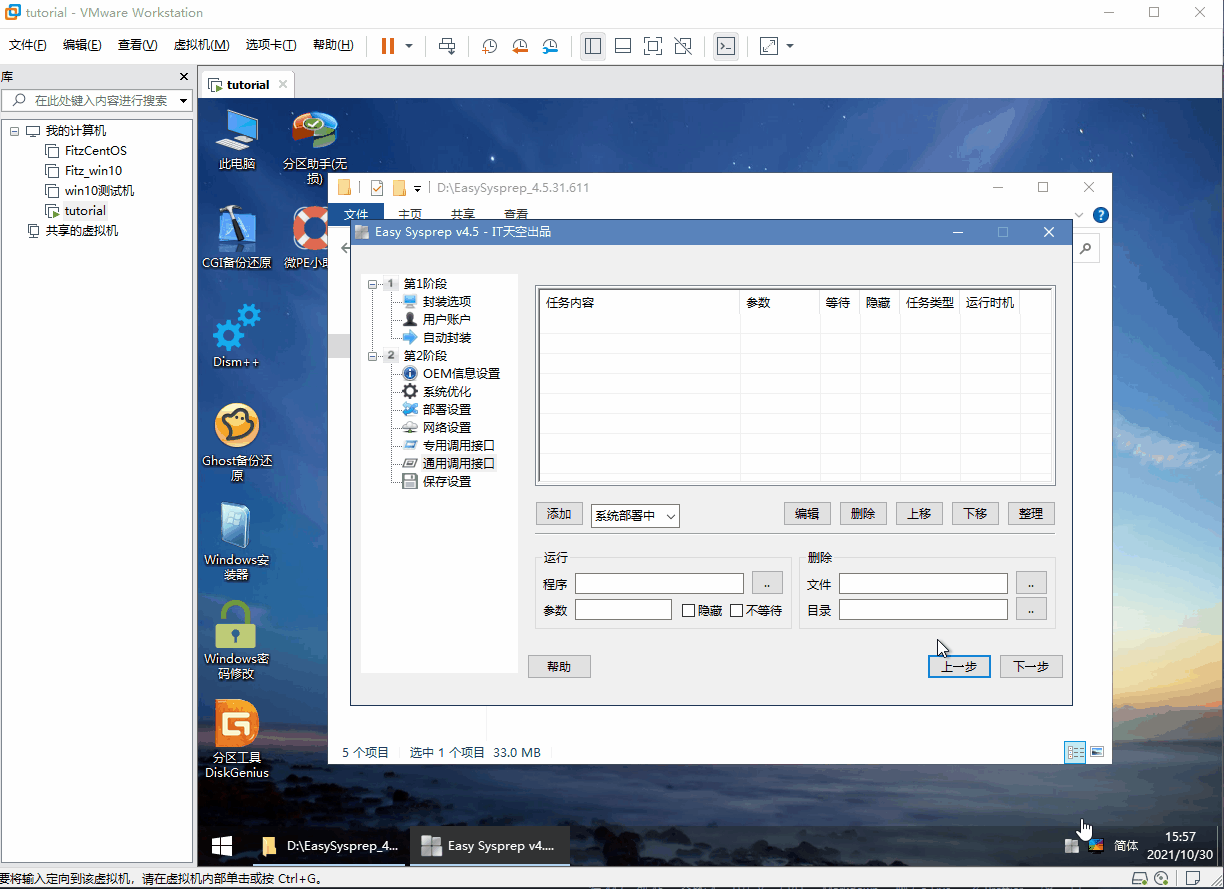 这一阶段主要是让vmware能更好的与物理机交互, 使得虚拟机能够轻易的访问到物理机中准备好的系统优化与封装所需要的软件资源, 同时将系统的权限提升到最大, 以进行一些需要高权限的优化操作