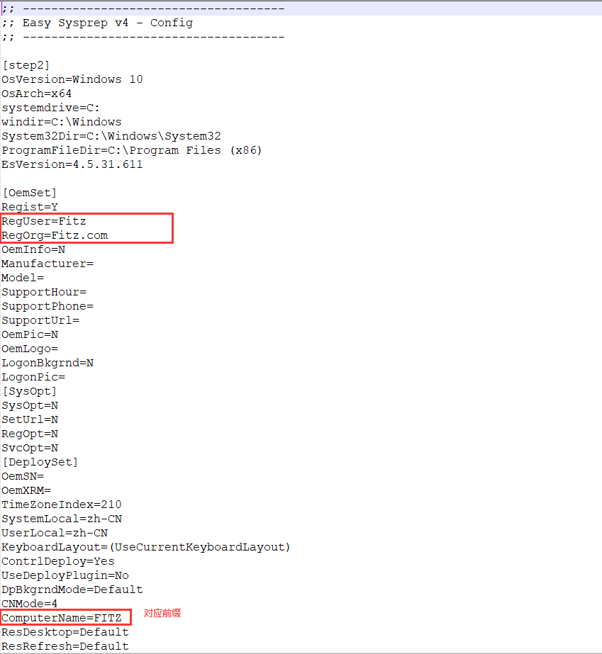 Es4Set.es4文件复制一份到到C:\Windows\ES4\Es4Set.step2中, 即: 第27步所做的事 - 第3步: 根据自己在封装软件中的设置对文件中红框部分进行修改, 配置文件示例如图, 注意: 信息要与实际封装一致